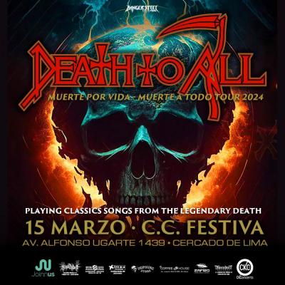 Concierto de Death To All en Lima, Perú 2024Los esperados Death To All llegan por fin al Perú por Primera Vez, para revivir el Legado de Chuck Schuldiner y su inmortal DEATH, reviviendo a la leyenda en un brutal concierto.Â