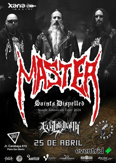 Concierto de Master Lima, Perú 2024Por primera y única vez se presentará esta leyenda del metal mundial, quienes tocaran sus dos primeros discos en su totalidad.