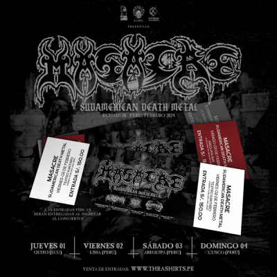 Gira de Masacre en Sudamérica 2024La banda colombiana de Death Metal, Masacre, anuncia su gira "Sudamerican Death Metal" que los llevará por Ecuador y Perú.