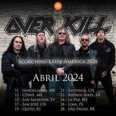 Gira de OVerkill en Latinoamérica 2024Los pioneros del Thrash Metal y leyendas de la escena, Overkill, estarán de vuelta en Latinoamérica para deleitar a sus fans con su poderÃo sonoro.