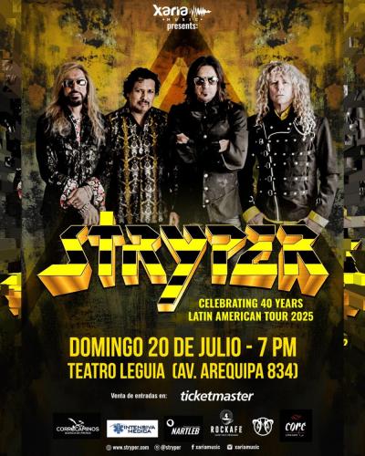 Stryper en Lima 2025Stryper es una de las bandas más reconocidas dentro del Heavy Metal, y ellos celebran 40 años y la banda tiene cita este 20 de Julio del 2025 en Lima - Perú.