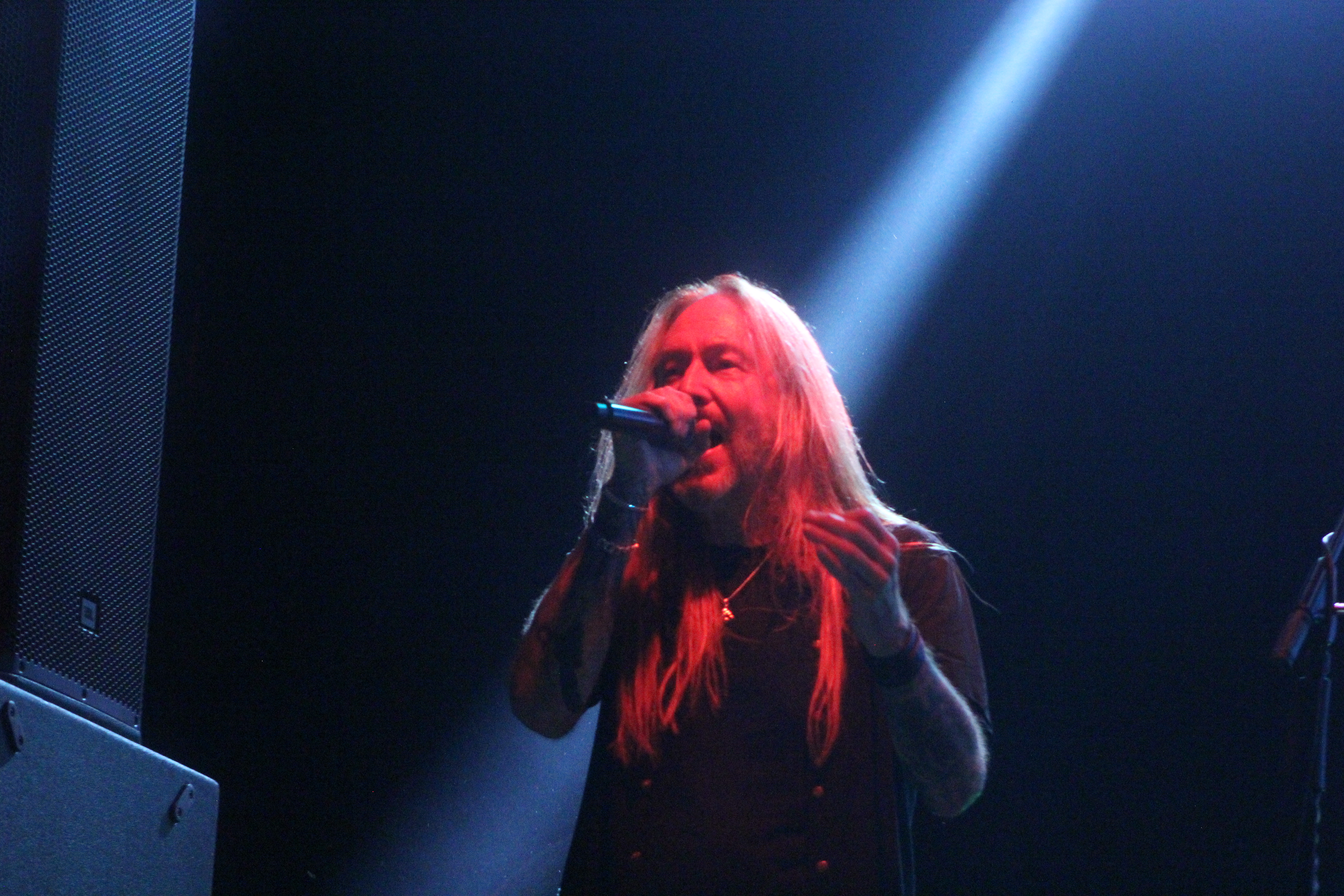 Una espera de 40 minutos aproximadamente tal vez un poco algo largo para que aparecieran los suecos en el escenario, y si justo poco antes de las 10 de la noche y el poder del martillo hizo retumbar el café iguana, los puños al aire no se hicieron esperar al sonido de “Avenge the Fallen” tema que abrió este show y el primer tema clásico no se hizo esperar “Heeding the Call” de su aclamado álbum Legacy Of Kings (1998). Al rugir ese sonido de la motocicleta llegó otro de los temas esperados “Renegade” el cual elevo aun mas la energía de los asistentes y el grito de Renegade se hizo escuchar por todo el Café Iguana y para no bajar la adrenalina “Hammer High”, son de esas canciones que si o si tienes que corear a la par de Joacim.